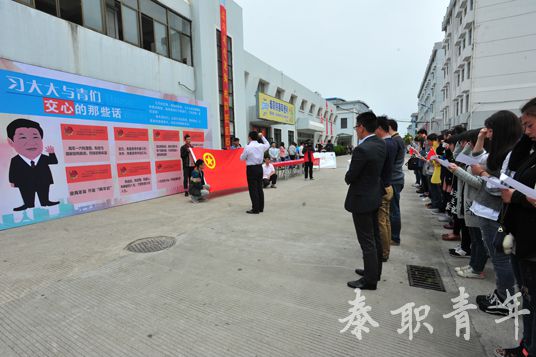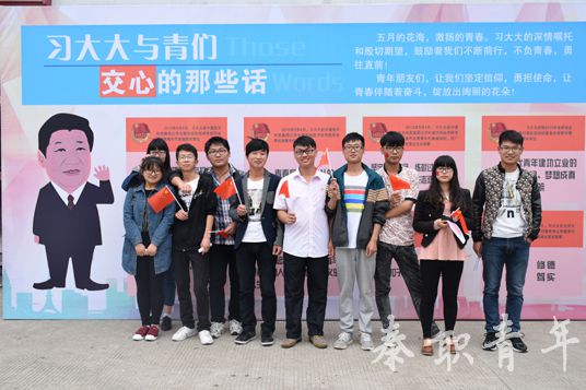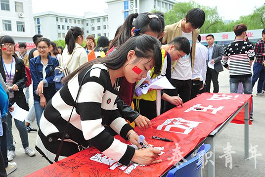 中午,“我耀我青春”寄语活动在我校就创广场热烈开展,学院广大青年师生积极参加寄语活动。现场,团委副书记严杰率领各分院团委书记以及同学们重温入团誓词,一起学习习总书记对青年们提出的殷切希望和谆谆教诲。同学们纷纷在横幅上签字并写下自己的青春寄语。