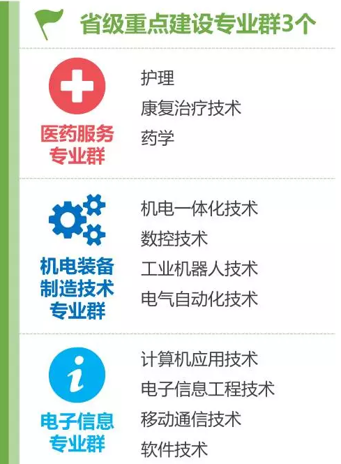 目前,学院已建成2个国家级重点专业,5个省级特色专业,3个省级重点建设专业群,4个院级重点建设专业群,基本形成了国家级、省级和院级重点建设体系集群