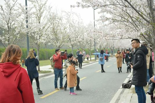 在赏樱区,阳光从樱花的缝隙中洒下星星点点的光斑,照映在前来赏樱的每个人身上,感念一季花开,欣喜一次相遇。