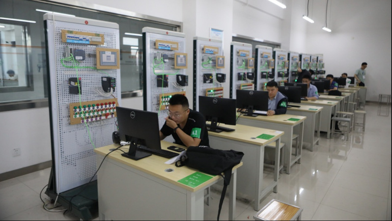 为了更好的提升设备工程师的技术技能、更全面的展示智能制药的全方位技能应用,校企充分调研对接,确定了小车往返自动控制、机器人视觉码垛、电气识图接线及电机拆装、钳工等4个赛项的培训及比武。电气识图接线及电机拆装、钳工两赛项锻炼工程师药品自动化产线维修的基本技能。小车往返自动控制赛项结合PLC、变频器、HMI等技术,广泛应用于药品自动化搬运生产线。机器人视觉码垛赛项,结合工业机器人、视觉、传送带等设备,对缺陷产品进行智能检测和分拣,应用于药品生产中压盖、贴标、喷码、装盒等生产过程中对缺陷的筛查及剔除。
