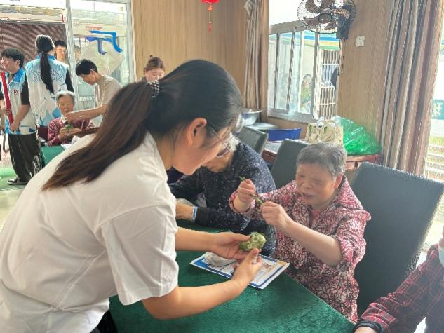 在粽叶飘香、艾草摇曳的美好时节,医学院党员教师、关工委成员、学生干部和贫困生代表联合智数院,于5月29日上午走进康莲苑老年公寓,开展了一场以“青春医路相伴,温情暖护桑榆”为主题的端午节活动。本次活动以弘扬端午节传统文化为核心,旨在用爱与陪伴为老人们送上节日的温暖,展现了新时代大学生强烈的社会责任感和无私奉献精神。