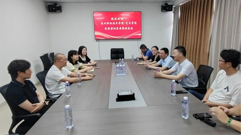 在江苏小陈故事文创有限公司,总经理陈红兵指出文创行业急需复合型人才,强调需具备文化感知力、创新设计思维、软件操作能力和生产工艺知识。谢华永表示将优化课程设置,增设不锈钢工艺等特色课程,并通过共建实习基地、开展项目合作等方式培养市场所需人才,双方达成初步合作意向。