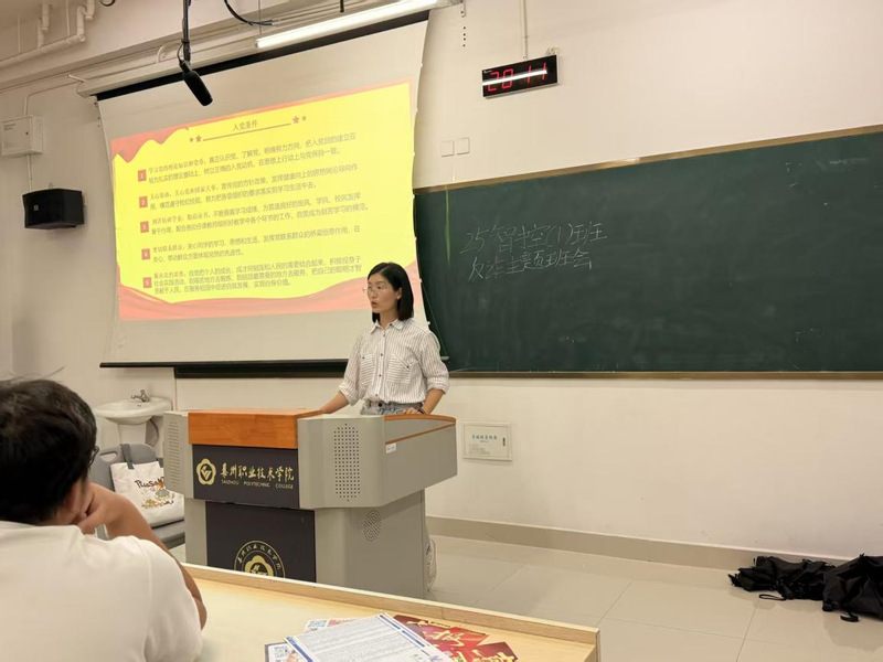 各班政治导师通过图文并茂的PPT展示、生动案例讲解等方式,帮助学生沉浸式学习。课堂上,张佳佳老师讲述中国共产党的奋斗历程,引导学生感悟信仰力量;宋时雪老师详细讲解入党申请书的书写规范;韩波老师系统介绍入党条件与流程,帮助学生明确成长方向。一位新生表示:“这次启蒙教育让我对党组织有了更深的认识,也坚定了我向党组织靠拢的决心。”